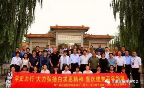 同时,大会还特别组织与会代表赴白求恩大夫曾经工作战斗并献出宝贵生命的牺牲地河北省唐县,凭吊了白求恩大夫烈士墓,参观了白求恩、柯棣华烈士纪念馆,组织了新党员宣誓和全体党员重温入党誓词。
