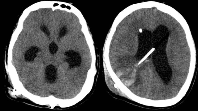 原以为李刚做完脑肿瘤手术后,情况应该会日渐好转,没想到出院10天后,他就出现头痛、呕吐、小便失禁、意识模糊,父母急忙将他送到医院,大脑CT检查提示“脑积水”,2019年1月11日,李刚又接受了脑室腹腔分流手术。手术后复查大脑CT发现分流管穿刺道“颅内出血”,意识状态刚刚有所好转的李刚2天后病情又出现恶化,陷入了昏迷,接着停止了呼吸。医生紧急抢救,穿刺分流管储液阀,抽出血性脑脊液约90ml,李刚自主呼吸逐渐恢复,第二天医生又为李刚做了右侧脑室穿刺置管引流,同时抗感染治疗。