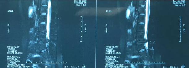 林女士2018年初无明显诱因出现右小腿麻木,持续了3个月后又出现右侧臀部、大腿后侧疼痛,弯腰、行走及久坐后症状加剧。直到今年9月,疼痛和麻木已让林女士无法正常行走,翻身困难,简直寝食难安。在外省医院医生拟手术治疗,上内固定,估算花费在十万元左右,林女士考虑再三。终于在病友的介绍下,来到福建三博福能脑科医院神经外科,入院查体及腰椎磁共振检查,诊断为:腰椎间盘突出症。